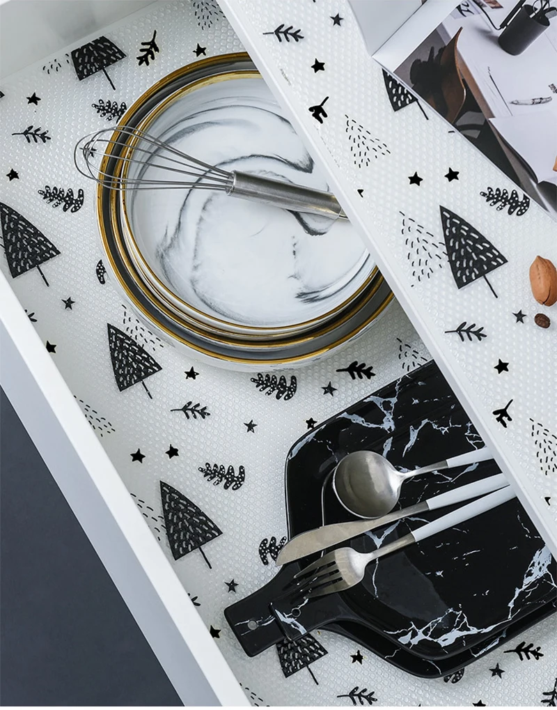 Multifuncional, pode ser cortado em qualquer tamanho que você precisa: pode ser usado para vestir suas prateleiras de livros, gaveta, bancada, mesa de jantar ou até mesmo mesa.