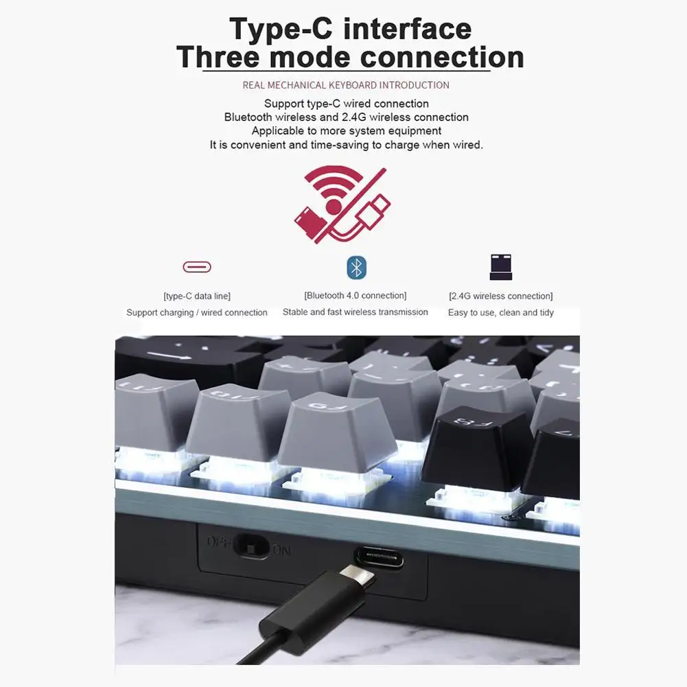 Он поддерживает проводное соединение Type-C, беспроводное соединение Bluetooth 4,0 и беспроводное соединение 2,4G, которое подходит для большего количества системного оборудования; При проводном подключении учитывается зарядка, что удобно и экономит время.