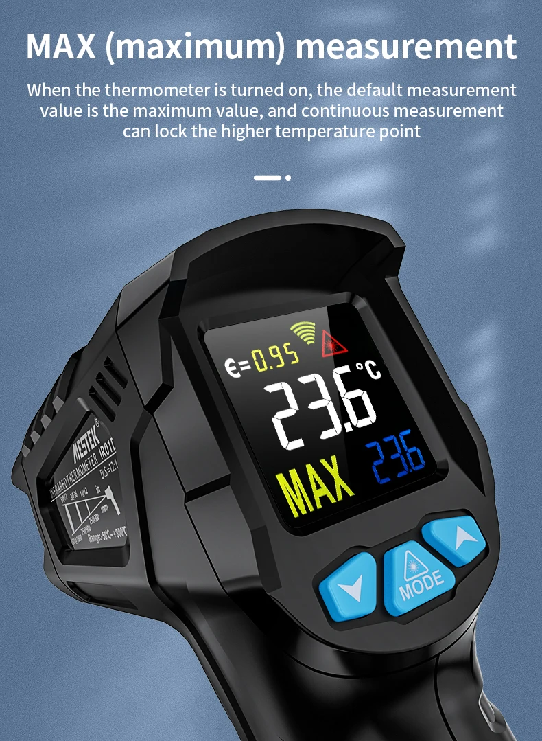 Когда термометр включен, значение измерения по умолчанию является максимальным значением, и непрерывное измерение может блокировать более высокую температуру