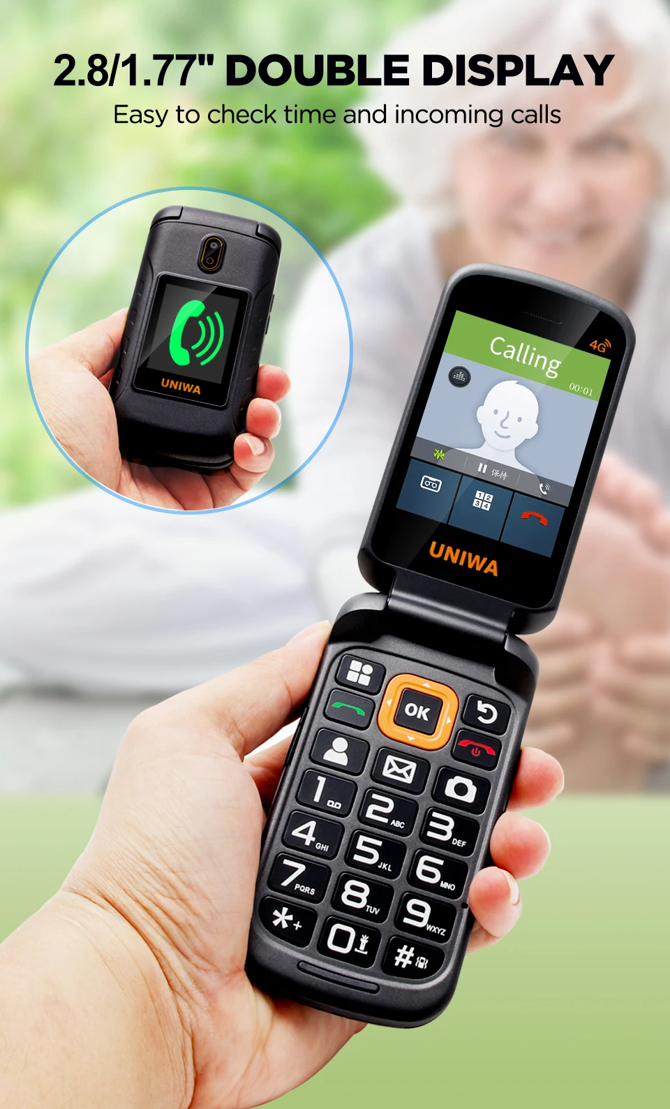 Полный 4G Группа NIWA V909T Большой кнопочный флип-телефон двойной экран 0.3mp камера FM радио Иврит Клавиатура раскладушка сотовый телефон