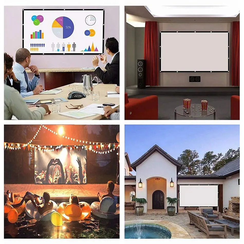 120-дюймовый экран проектора принимает окружающей расширенный черный Бортовая Натяжная структура для того, чтобы сделать поверхность экрана более плоскими. Черная сторона прямой, без провисания, и прямоугольный эффект идеально подходит без складок, деформации и складок. Мягкий материал для штор легко хранить и складывать и легкий. Вы можете использовать его с мини-проектором нашего магазина, чтобы насладиться эффектом кинотеатра дома, позволяя вам легко иметь свой собственный домашний кинотеатр.
