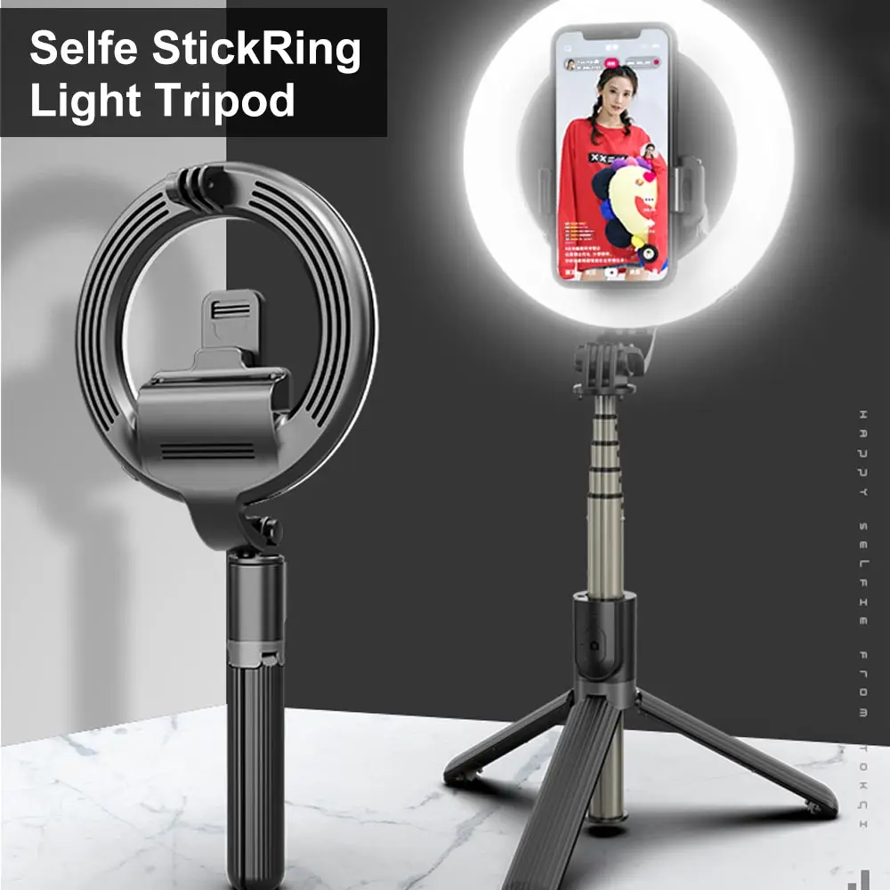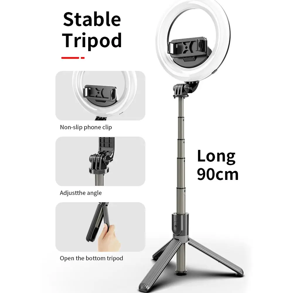 Светодиодный кольцевой светильник 3-в-1 в сочетании с подставкой-держателем для смартфона и беспроводной селфи-палкой BT.