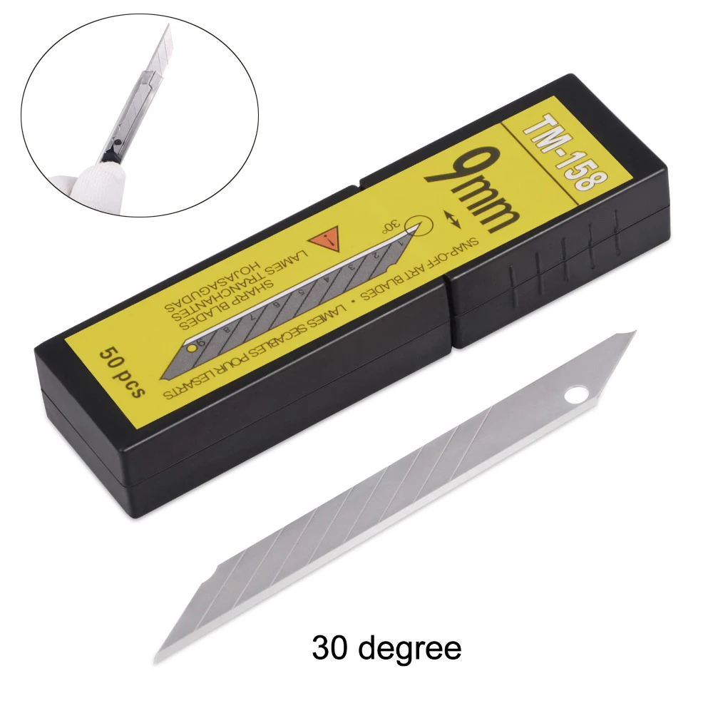 FOSHIO 50/100 шт. разноцветная виниловая пленка выдерживает температуру до 30 градусов, Сталь Лезвия 9 мм автомобиля Обёрточная бумага Стикеры Бумага резак многофункциональный нож лезвия Авто Оттенок режущего инструмента