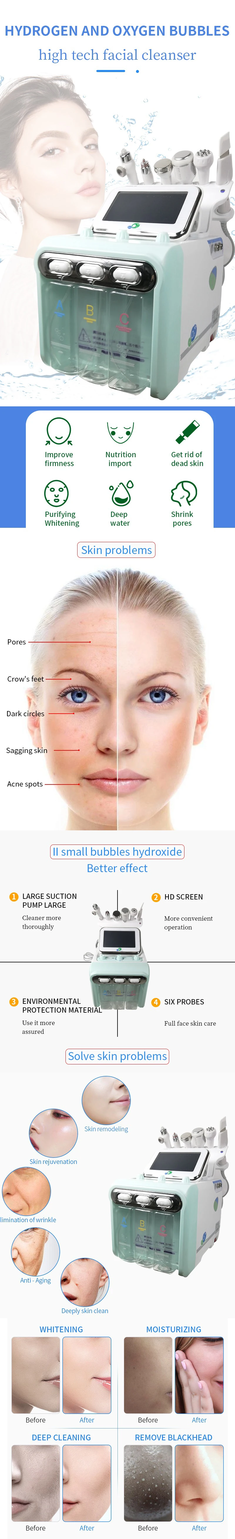 1. Водородный кислород увлажнение: омоложение кожи. 2. Ультразвуковой импорт: стимулирует микроциркуляцию, омолаживает кожу. 3. Холодный молоток Отбеливание: холодная кожа после лечения. 4. Скруббер кожи: Удалите угловую кожу и подтяните. 5. Кислородная очистка водорода: Очищение лица, пилинг, очищение пор. 6,9 Полюс RF: компактная форма, подтяжка лица. 1. Холодный Молот быстро охлаждает, сужает поры, успокаивает кожу, успокаивает мешки для глаз, блокирует питательные вещества. 2. Скруббер: высокочастотная вибрация, эффективное введение, восстановление кожи, носовая текстура. 3. РЧ: способствует регенерации коллагена, Заполняет морщины, восстанавливает упругость и эластичность кожи. 4. Кавитация: вибрирует для удаления омертвевшей кожи, Удаляет излишки кератина, улучшает поглощение кожи и проникновение. 5. Кислородный спрей: прибор производит высококислородные молекулярно-ионные клетки, в сочетании с продуктовым раствором, и прибор проливается в дерму на высокой скорости. 6. Гидро-дермабразия: уникальная вращающаяся чистящая ручка преобразует чистую воду в гидроксидную воду водорода, которая производит тонкие молекулы H2 на поверхности кожи, таким образом, молекулы воды могут быстро проникать в кожу и достигать эффекта разглаживания и отбеливания.