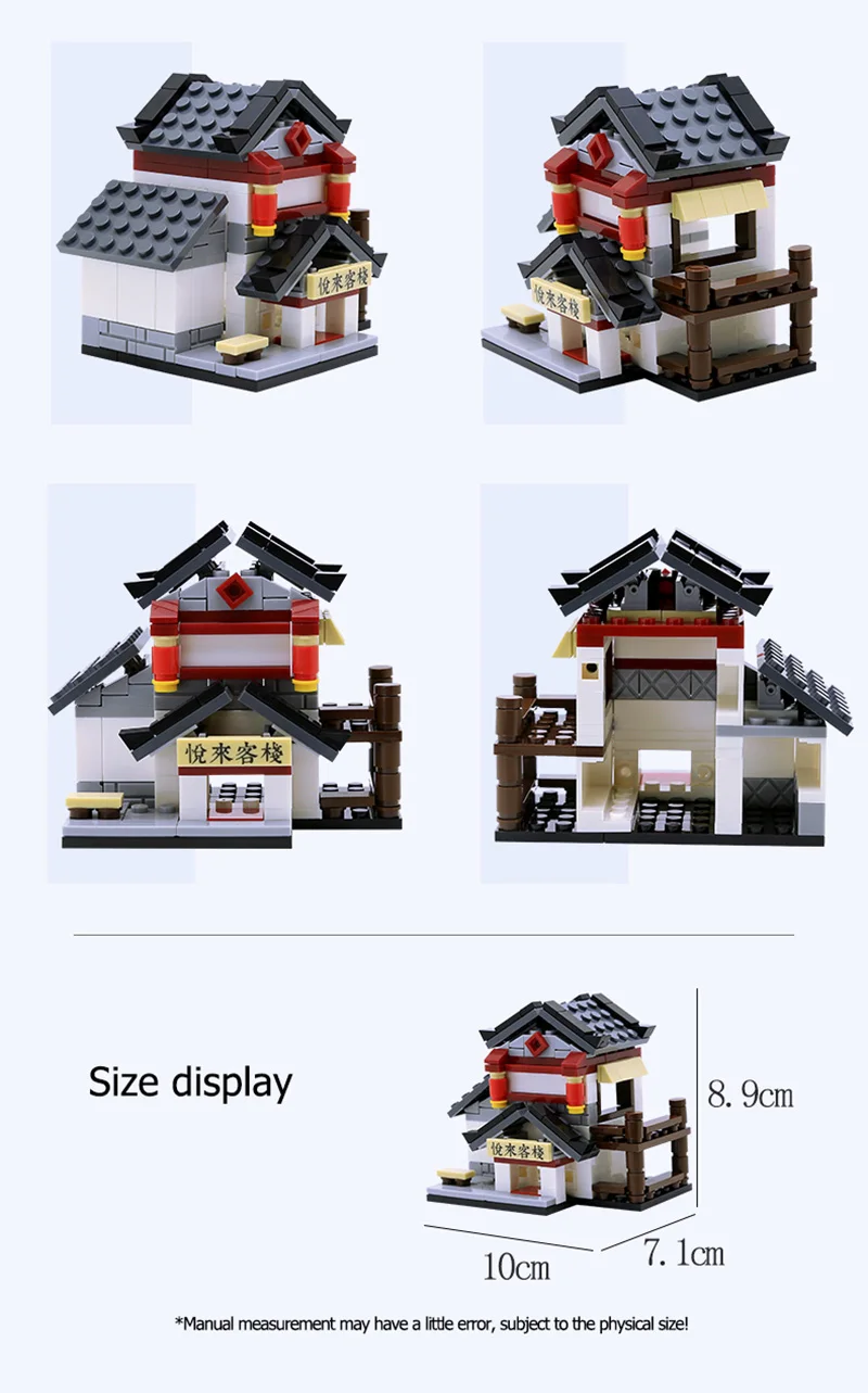 Без оригинальной коробки Простой уличный вид в китайском стиле Строительные блоки DIY Кирпичи совместимые строительные здания мир архитектура серии блок игрушка T1 Teahouse (количество частиц: 162 шт) T2 Jinxiu Cloth Shop (количество частиц: 174 шт) T3 Shiweixian Ресторан (количество частиц: 174 шт) T4 Yuelai Inn (количество частиц: 176 шт) T5 Винодельня (количество частиц: 187 шт) Магазин T6 Baozi (количество частиц: 152 шт) Название товара: Китайская серия небольших уличных сцен Подходящий возраст: 6 + Материал товара: глянцевый АБС-пластик для защиты окружающей среды