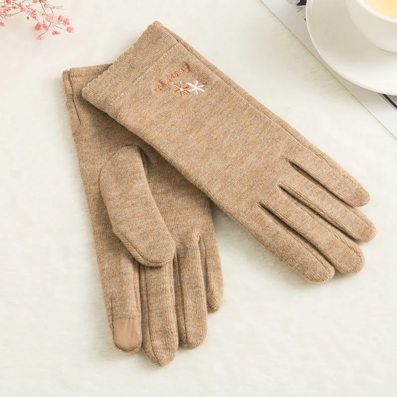 Плюшевые Внутри Теплые женские перчатки для вождения варежки сплошной цвет полный палец Сенсорный экран трикотажные имитация кашемира перчатки