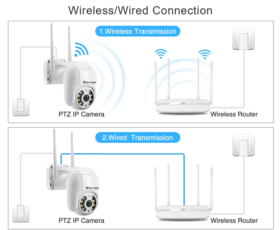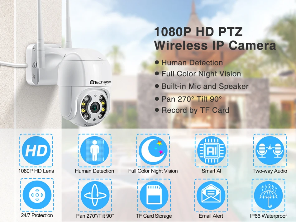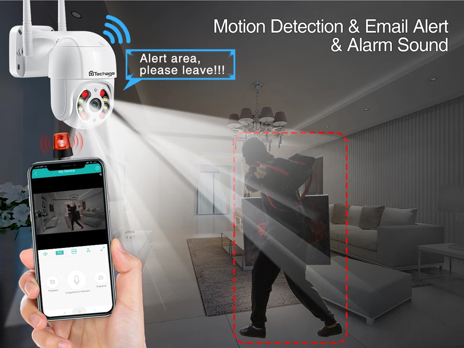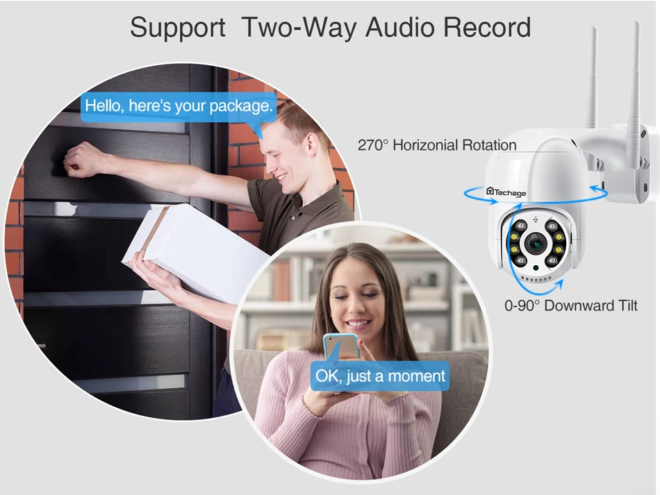 Поворот на 270 градусов PTZ/наклон вращение по вертикали на 90 градусов, управление углом поворота через приложение iCsee