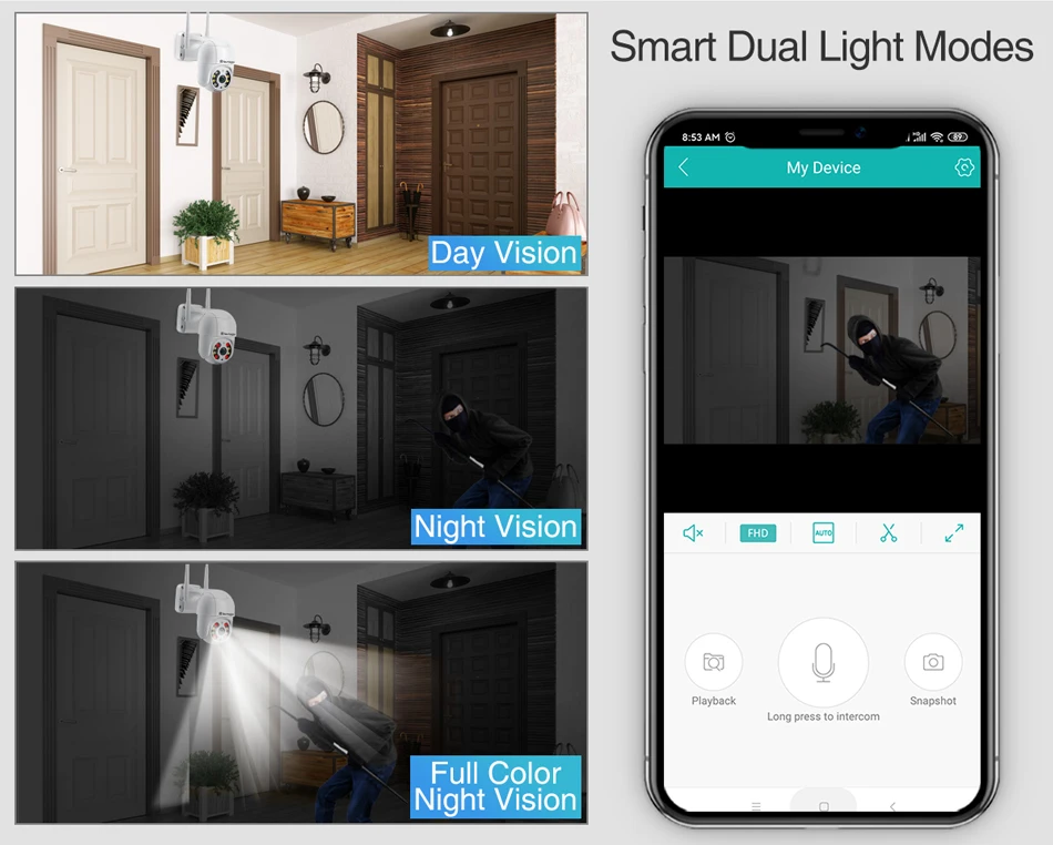 Когда светятся белые светодиоды, камера будет показывать красочное видение ночью,
