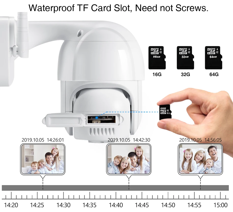 Поддержка TF-карты до 128 ГБ и месяц бесплатной облачной записи.