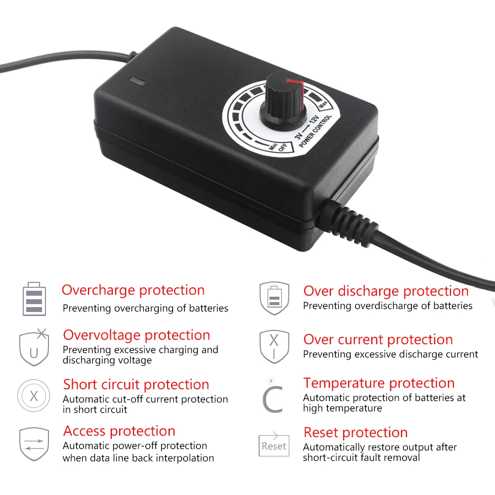 Adjustable voltage power controller, 3-12V 2A or 9-24V 1A optional, just adjust the required voltage through the switch knob.