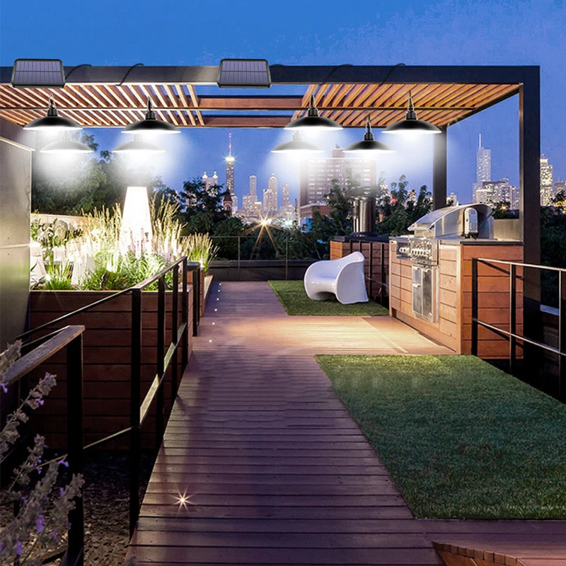 Сначала Подключите соединительную линию солнечной панели, установите солнечную панель и Зафиксируйте положение наружного солнечного излучения, Повесьте крышку лампы по желанию и поместите положение освещения