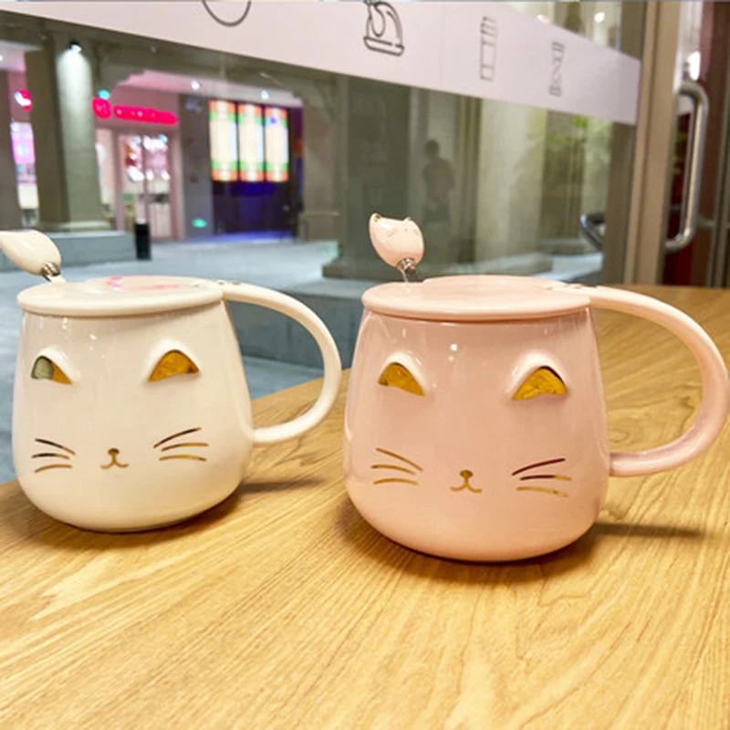 Стиль: милая керамическая кофейная кружка с ложкой и крышкой