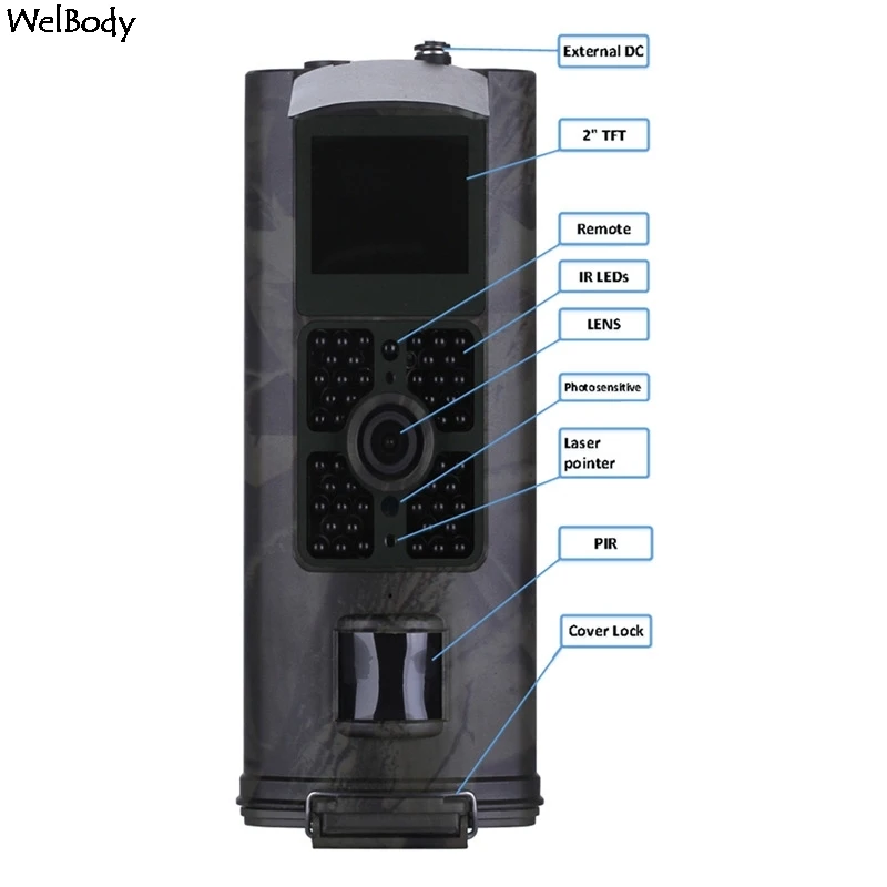 • Он прост в использовании, есть цветной ЖК-дисплей 2,0 дюйма на камере, и он поддерживает MMS/SMTP/SMS/e-mail через сеть 3G. Он устойчив к воздействию воды и снега для наружного использования.