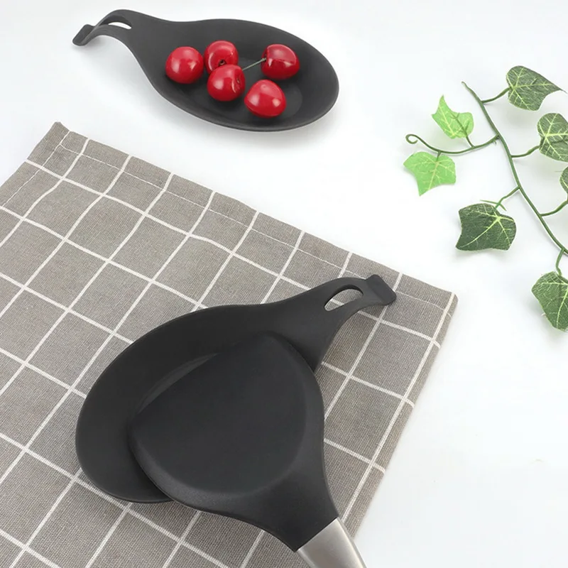 ** Ложка для отдыха: Силиконовая ложка для еды, может использоваться для укладки ложки, кисти, вилки, лопаты, Тернера, посуды и так далее. С подвесным отверстием для удобного хранения, вы можете повесить его на стену.