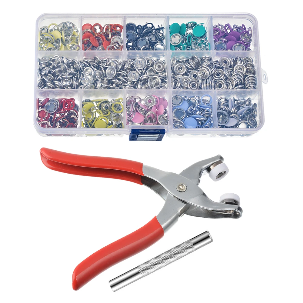 Плоскогубцы-1 шт. (металлический стержень-1 шт. + пластиковая Резина-2 шт.) ;90 наборов, 10 цветов, полые кнопки-зубец + 90 комплектов, 10 цветов, прочные кнопки-зубеки