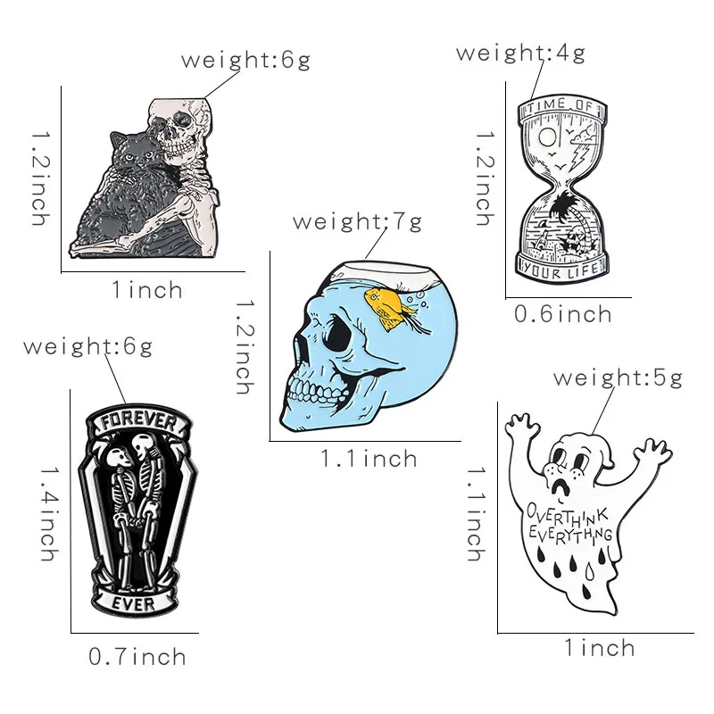 4.Специальная конструкция:Уникальный дизайн узора эмали pin набор подходит для Хэллоуина! Крепкий крепкий зажим для крепления на любом тканевом материале, не скользит от него.