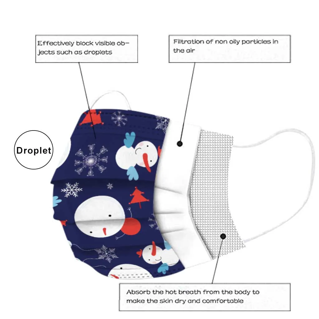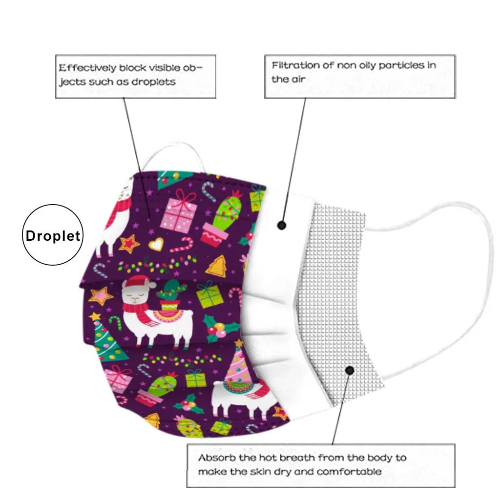 3-слойная Нетканая одноразовая маска изготовлена из 3-слойного нетканого материала, она Безопасен и безопасен для использования. Дышащий материал и милый Узоры, которые делают его полезным и модным. Специальный 3-слойный нетканый материал Дизайн, обеспечивает некоторую защиту от пыли, автомобильных выхлопных газов, Пыльца и т. д. эластичная Ушная петля, легко носить и не давит на уши. Маникюрный салон или любые другие области, где может потребоваться защита