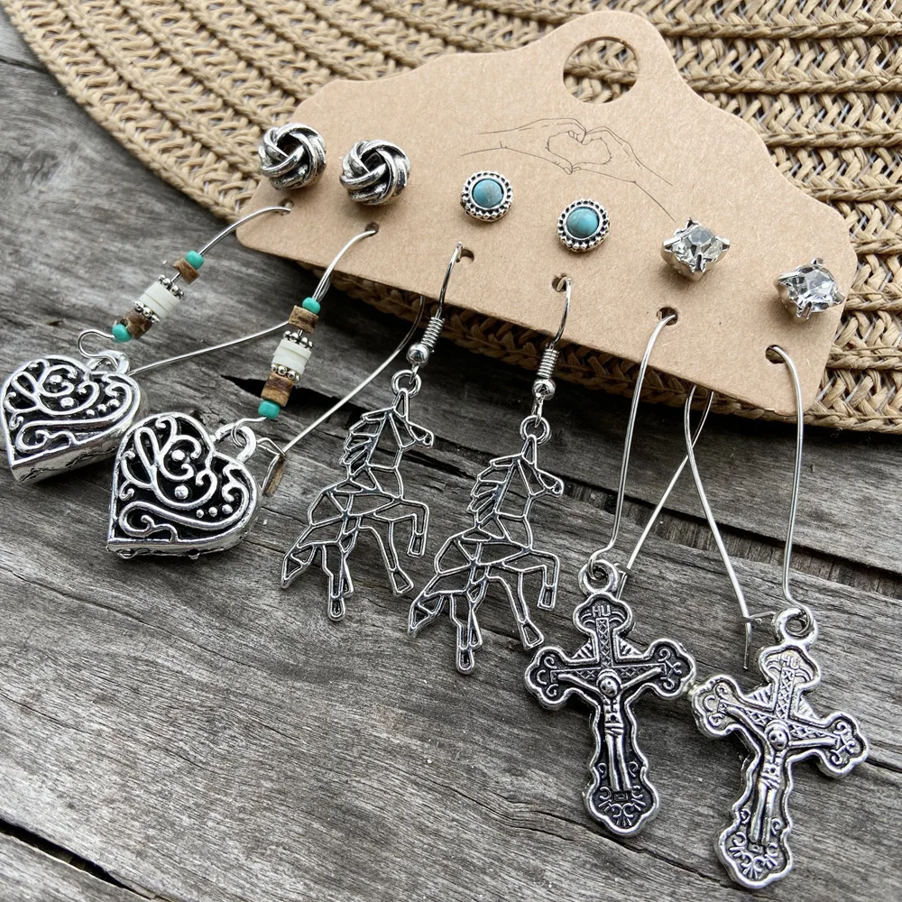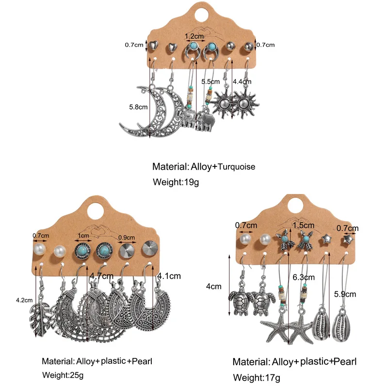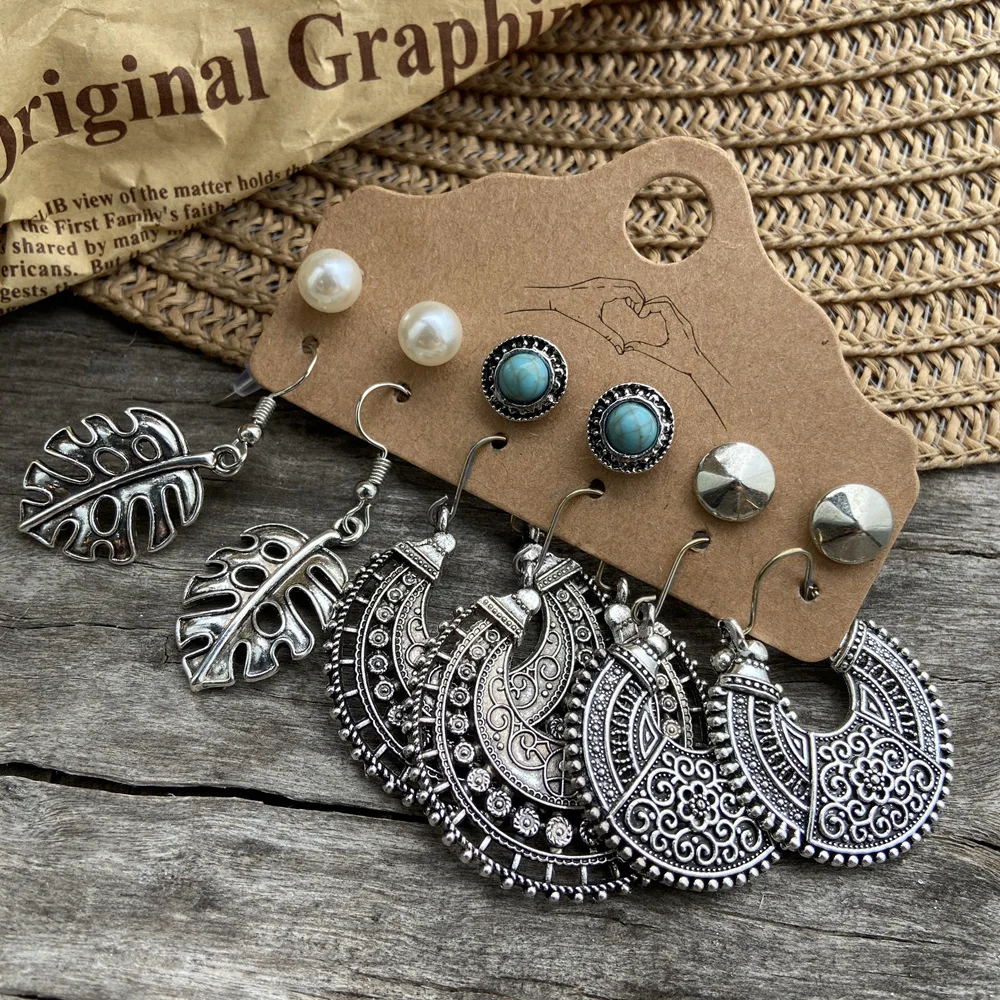 DIEZI Vintage Stud Earrings Set Women Girls New Brinco Sun Flower Moon Leaves Long Tassel Stud Earring Ethnic Fashion Jewelry