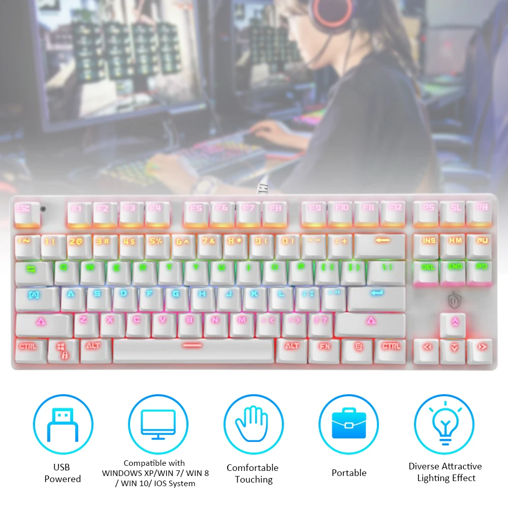 Портативный и экономичный, этот вид механического кеборда 87 клавиш хорош для игр, просто покупайте и наслаждайтесь.