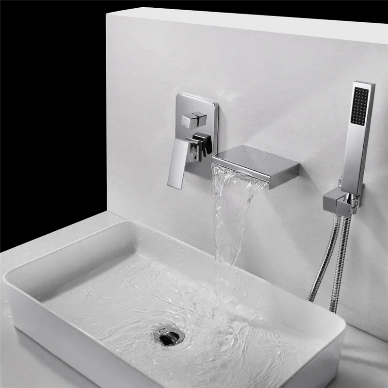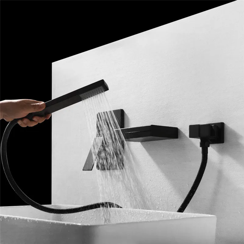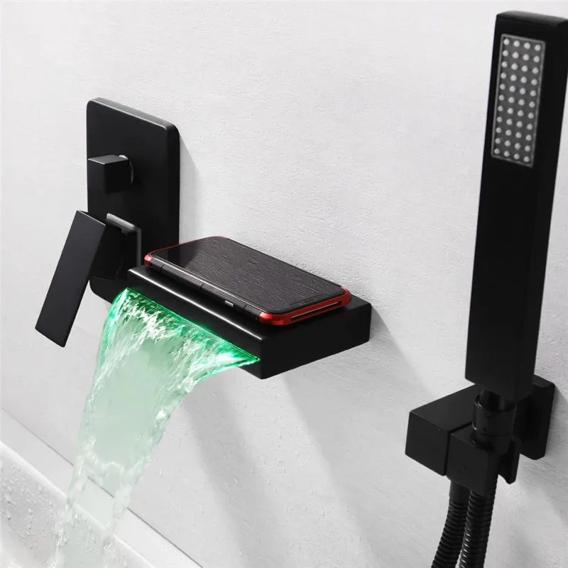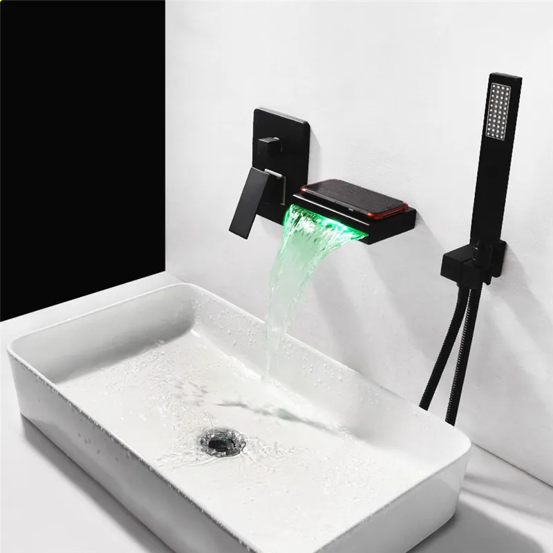 Современный кран для ванной настенный широко распространенный водопад смеситель для душа чувствительный к температуре светодиодный светильник смеситель горячей и холодной воды кран