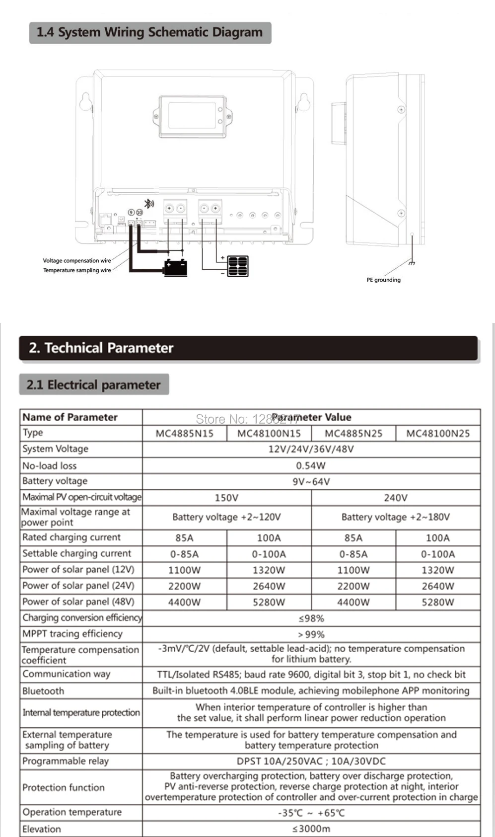 MC 48100N25/MC 48100N2512 В/24 В/36 В/48 в автоМаксимальный PV вход Volta 250V.