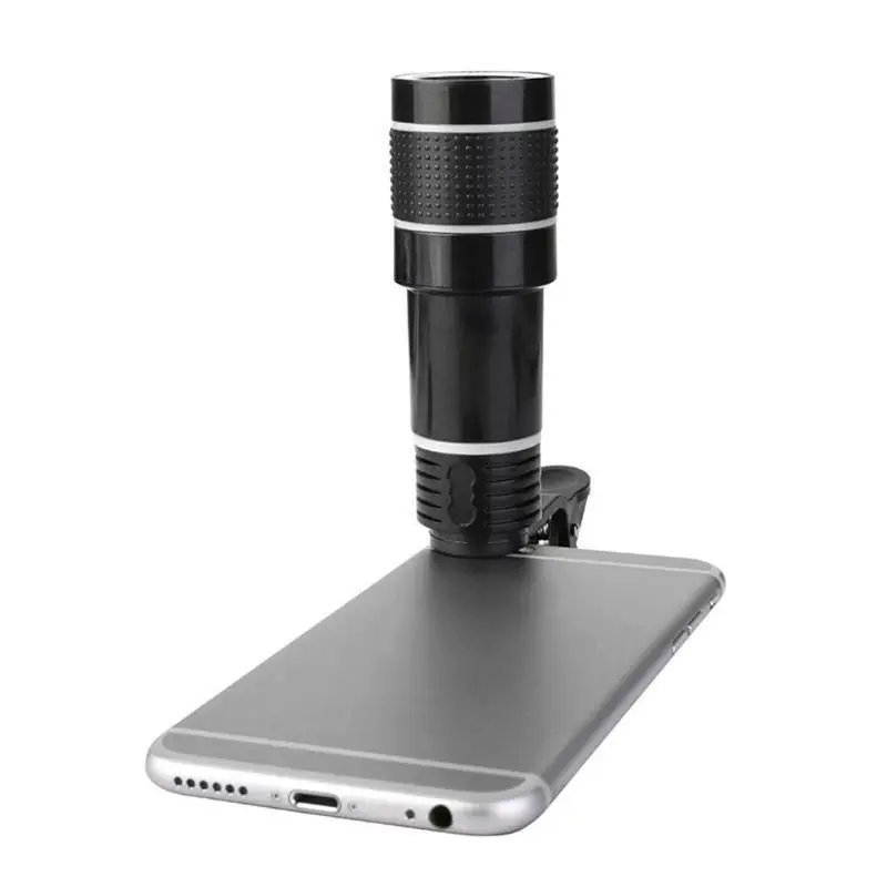 Мобильный телефон имеет заднюю камеру, которую можно подключить к телескопу с помощью зажима.