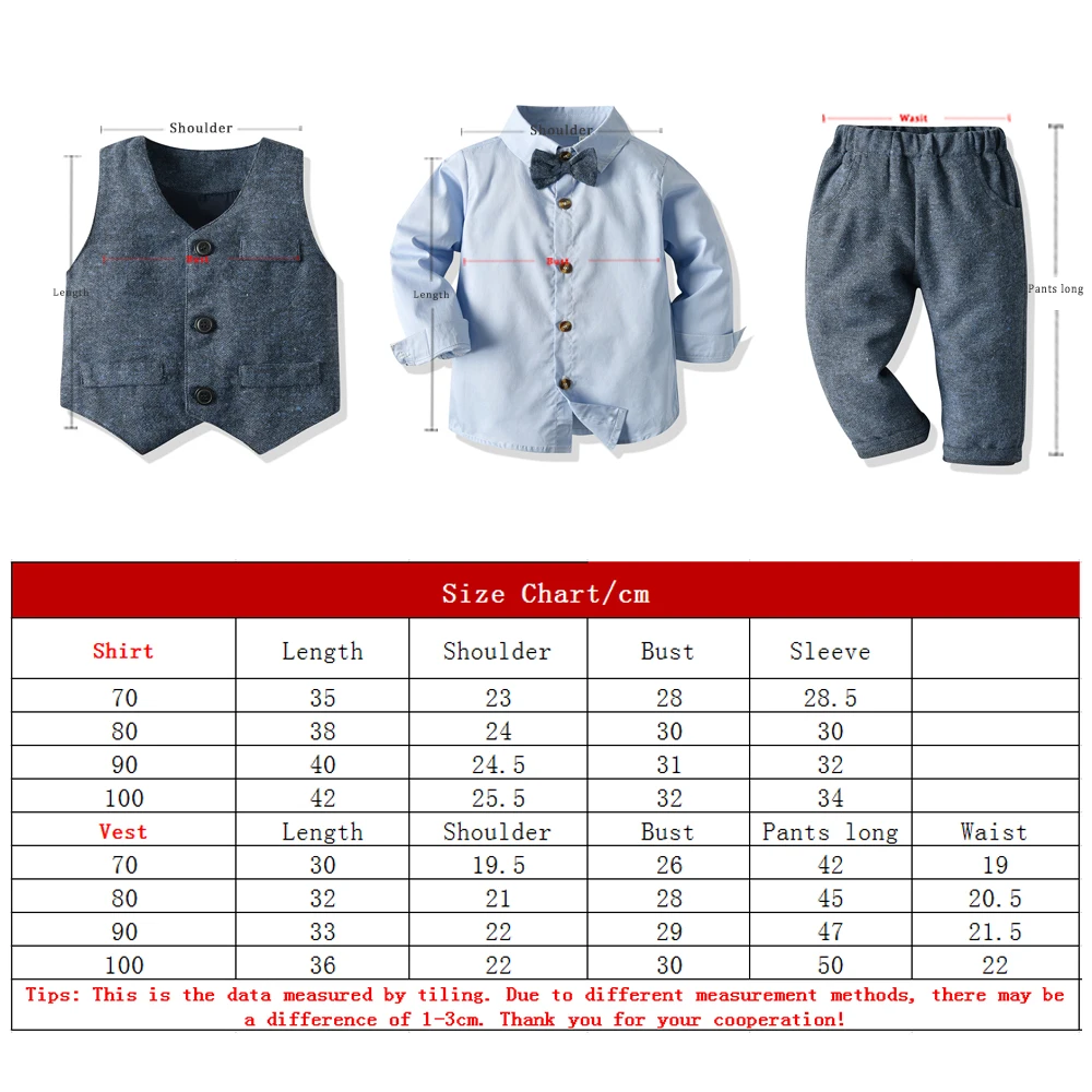 Tem Doger 2020, осенне-зимняя одежда для младенцев, комплект из 3 предметов: Рубашка с длинными рукавами и галстуком-бабочкой + жилет + брюки, строгий костюм, детский смокинг