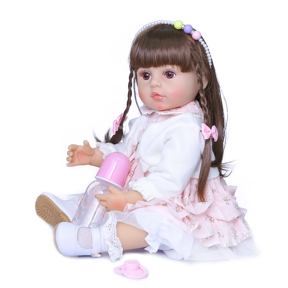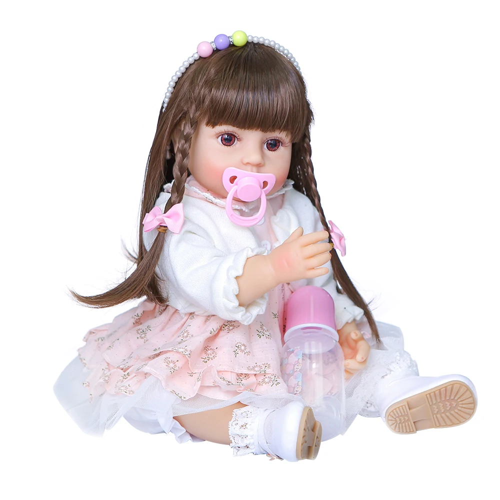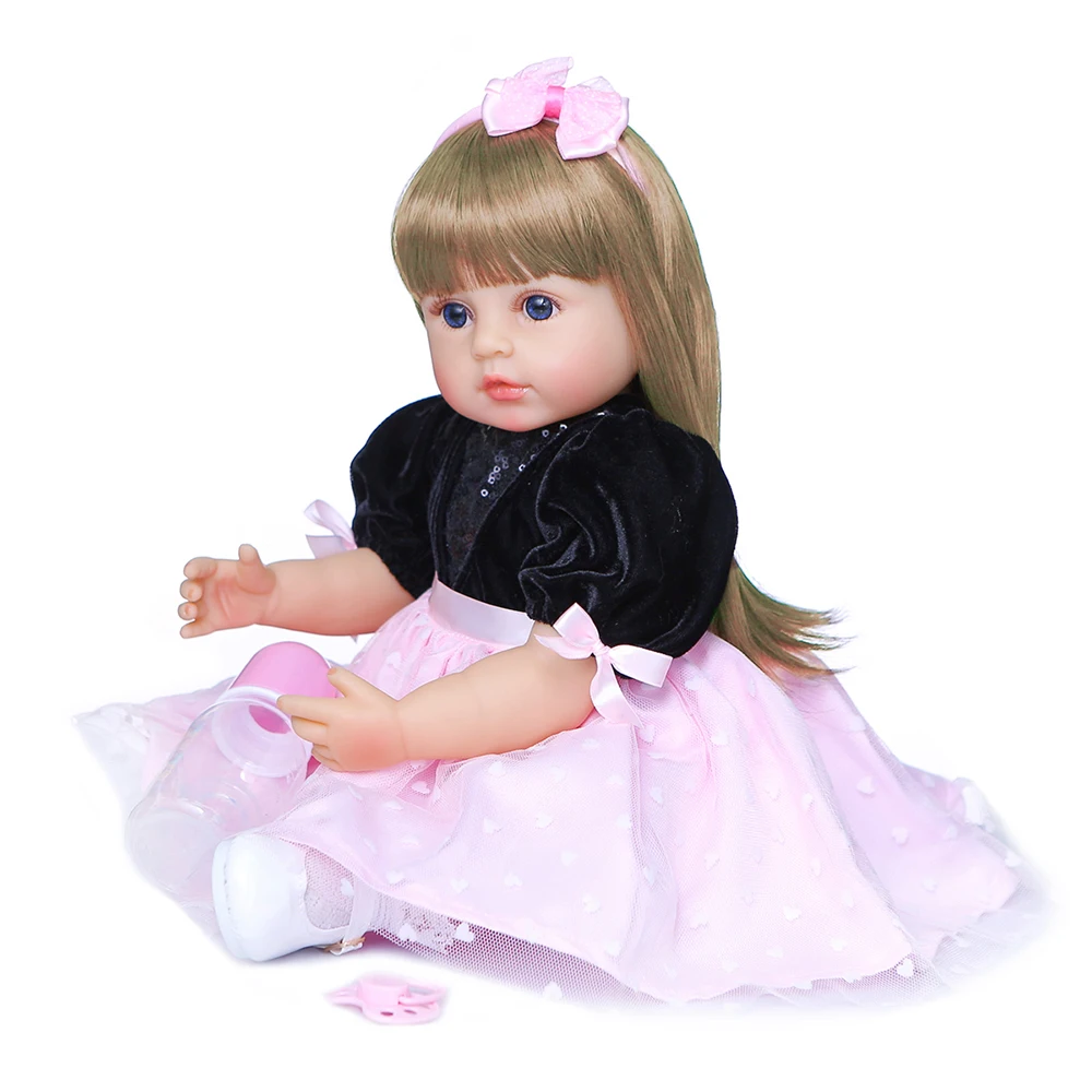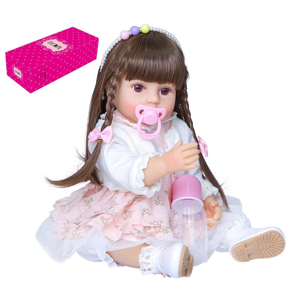 Эта кукла с полным силиконовым виниловым корпусом, в настоящей детской одежде, 22 дюйма от головы до пальца, мягкая на ощупь, как настоящий ребенок. И он может войти в воду, чтобы сопровождать ребенка, чтобы принять душ. Идеальный ребенок сопровождать игрушки, фестивали и подарки на день рождения, сбор кукол.