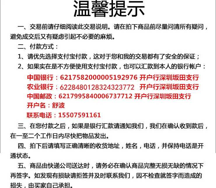 ●Если вам действительно не нравится после получения товара,Если это не влияет на вторичные продажи,Может быть скорректирована для других товаров той же стоимости или выше или непосредственно, почтовые расходы несет покупатель.