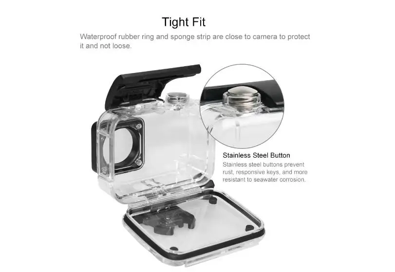 1. Полностью совместим с экшн-камерой Xiaomi Xiaoyi II 4K. 2. Прочный и пригодный для использования, анти-серфинг давление не повредит его фотографический эффект. 3. Поставляется с одним стандартным винтом, прост и удобен в установке и использовании. 4. Защита герметичности корпуса, не только лучше водонепроницаемый, но и более эффективный, чтобы предотвратить попадание небольшой пыли в камеру. 5. 45 метров полный корпус подводный водонепроницаемый дизайн, идеально подходит для дайвинга, подводного плавания, плавания и других водных видов спорта. Параметры: Общие Материал акриловое волокно Водонепроницаемость 45 метров Водонепроницаемость Функции водонепроницаемый, пыленепроницаемый, устойчивый к давлению Размеры 8*8*4 см Вес 90 г Посылка весом Один посылка Вес 0.1kgs / 0.22lb Один посылка Размеры 16,0 см * 13,0 см * 4,0 см/6,3 дюймов * 5,12 дюймов * 1,57 дюймов Кол-во в коробке 100 Вес коробки 10.5кг/23,15 фунтов Коробка Размеры 47 см * 32 см * 32 см/18,5 дюймов * 12,6 дюймов * 12,6 дюймов