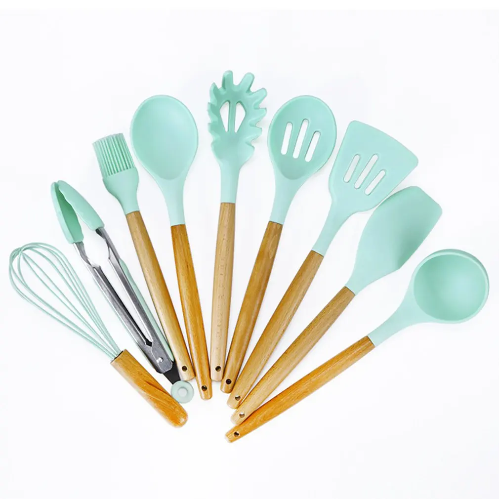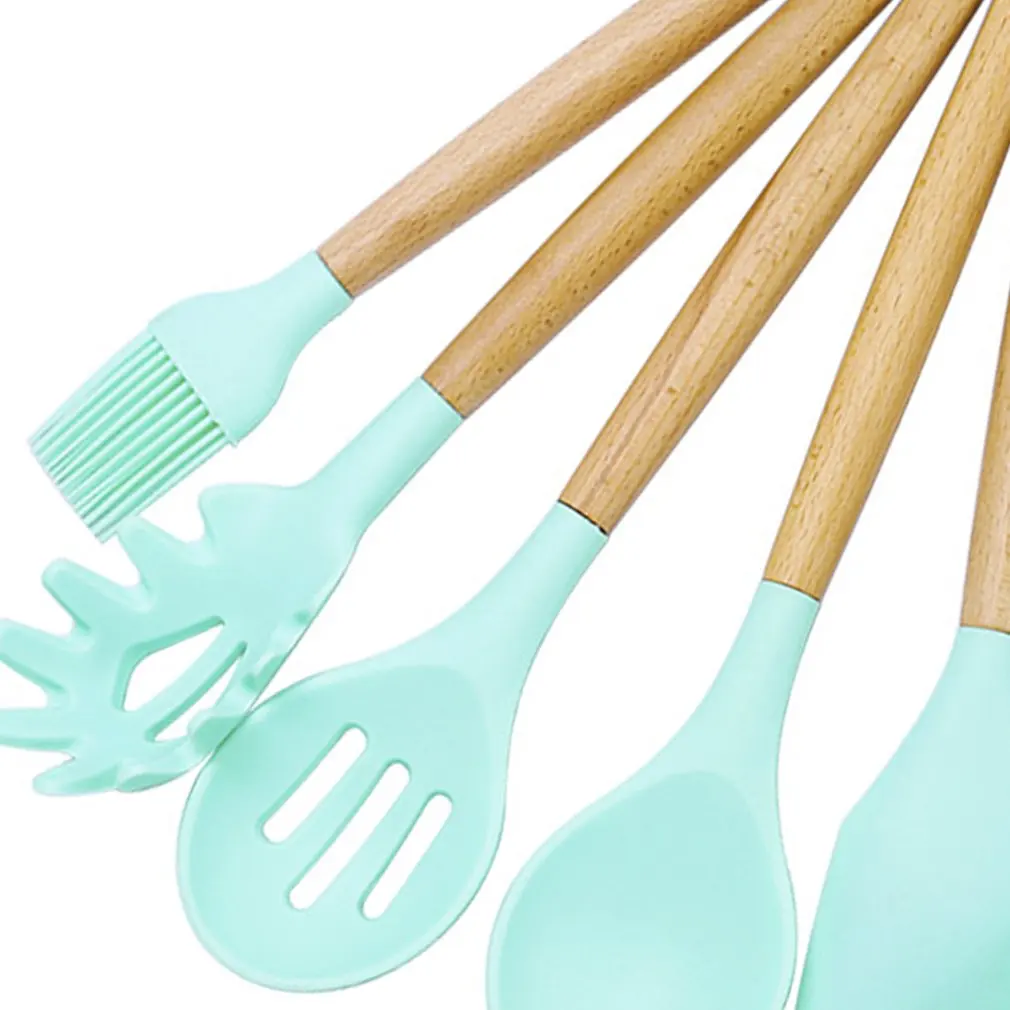 1. Это набор стильных антипригарных силиконовых кухонных принадлежностей, прочного материала и длительного срока службы.