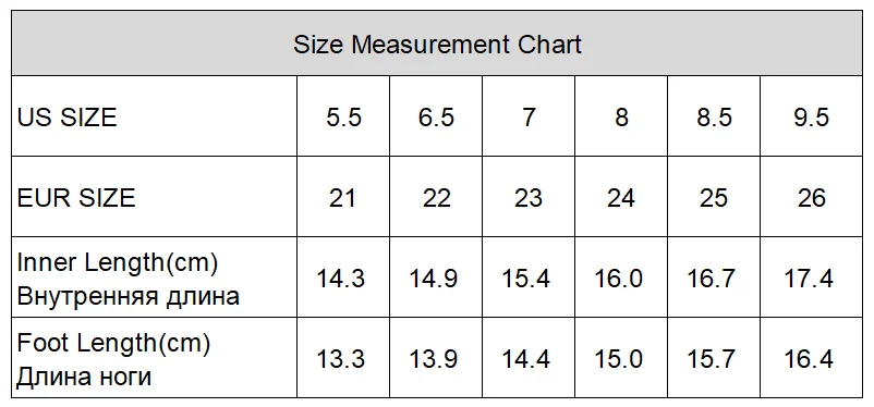 Пожалуйста, проверьте таблицу размеров ниже. Пожалуйста, выберите свой размер в соответствии с длиной стопы. Как только вы найдете нужную длину стопы, найдите соответствующий американский/Европейский размер для размещения заказа.