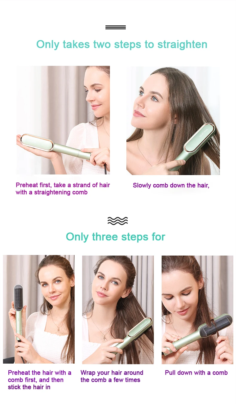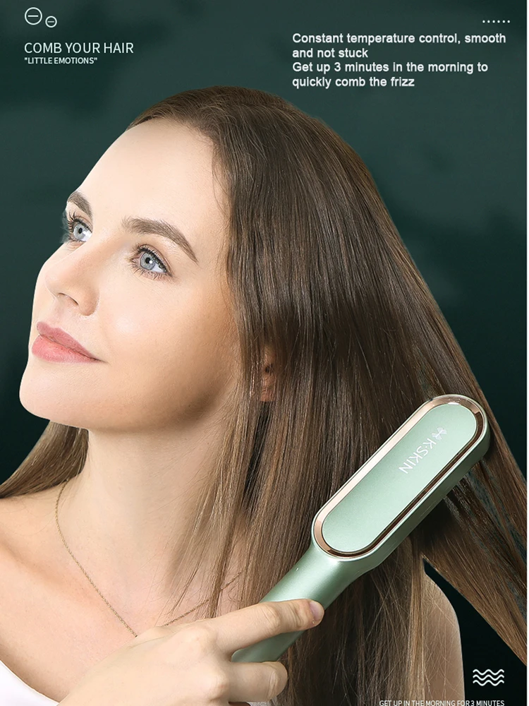 Название продукта: расческа для выпрямления волос Тип товара: прямые и кудрявые с двойным использованием Применимые волосы: сухие и влажные волосы Материал: PTC керамика Диаметр проводника: 21 мм-30 мм Лучшее время моделирования: менее 1 минуты Цвет: зеленый П/П: KD380A Мощность: 45 Вт