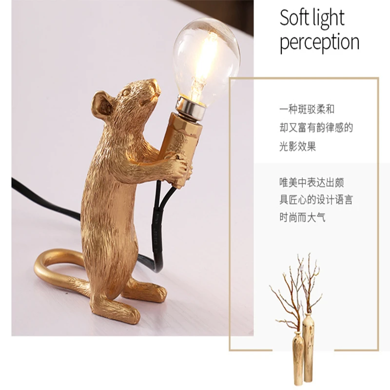 Постмодерн креативность смоляная мышь светодиодный настольный светильник Скандинавский дизайн животное крыса маленькая мини мышь милый Настольный светильник для спальни прикроватная тумбочка
