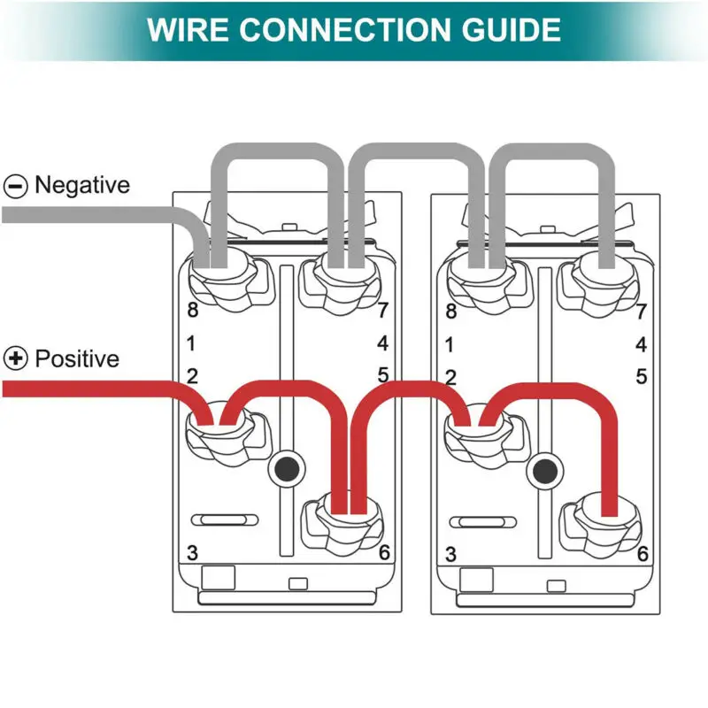 * Метод проводки: Красный провод подключается к положительному полюсу батареи, черный провод подключается к отрицательному полюсу батареи