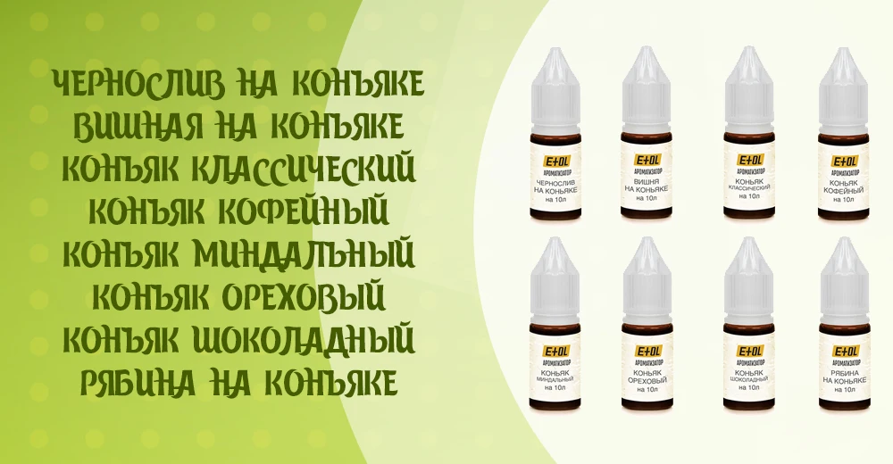 В набор пищевых ароматизаторов (вкусовых концентратов) "Вся коньячная серия" на 80 литров самогона входят следующие ароматизаторы: