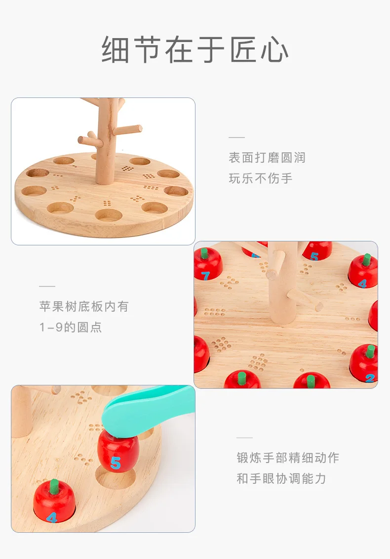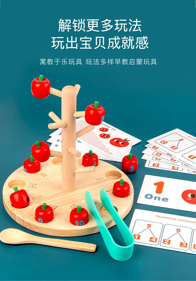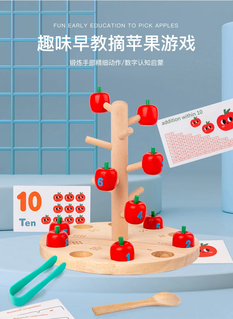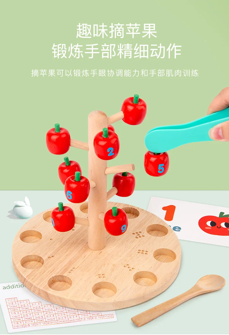 Игрушки для сбора яблок, деревянные щипцы, ложка Монтессори, учебные пособия, щипцы, игра-пазл, фруктовый сад, игрушки для сбора фруктов для детей
