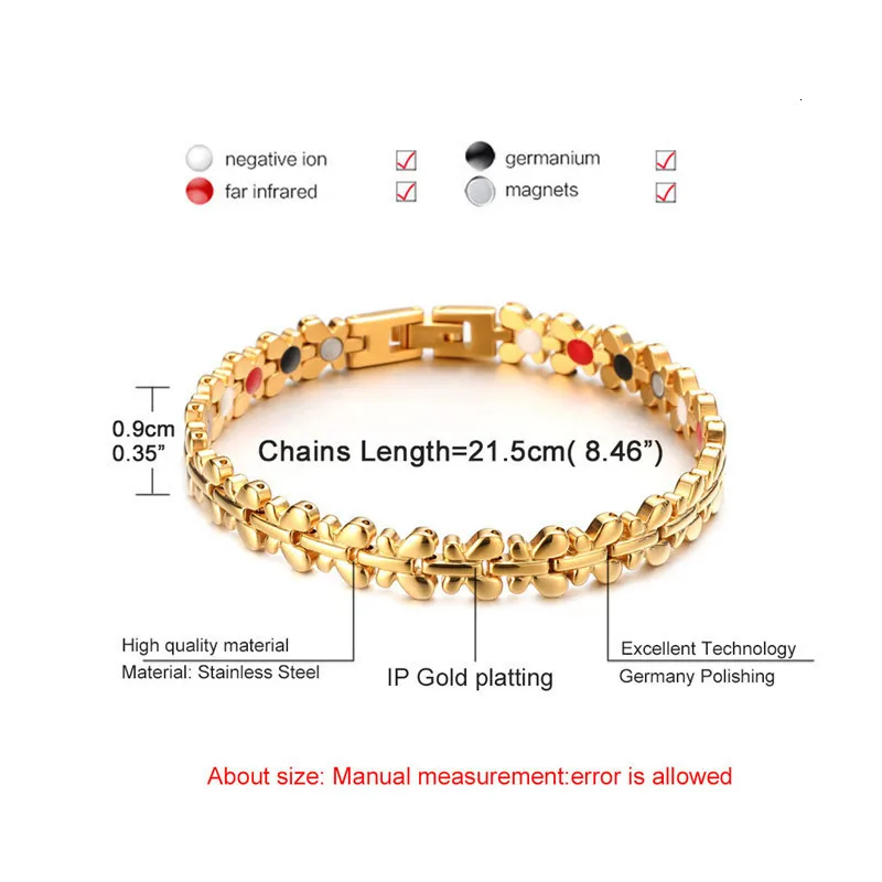 РазмерыШирина 9 мм длиной 21,5 см Позолоченные здоровые магнитные браслеты и браслеты, мужские ювелирные изделия