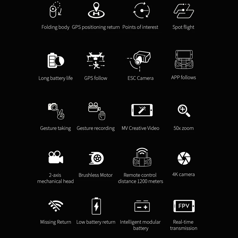 Креативное видео. Вы можете войти в интерфейс MV, чтобы добавить фоновую музыку в записанное видео. Вы также можете поделиться своим видео с друзьями. Функция: 5G Wi-Fi FPV, ESC камера, приложение управления полетом, GPS автоматическое возвращение, режим следования за мной, режим высоты, режим полета путевой точки, оптическое позиционирование потока, объемное изображение с фиксированной точкой, фотосъемка жестов, креативное видео, Безголовый режим, фиксированное переключение, 2-уровневая регулировка скорости полета, один ключ Взлет/посадка, один ключ возврата