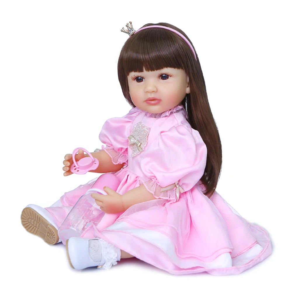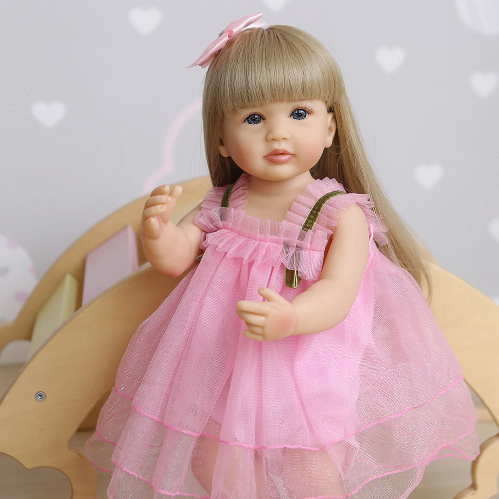 22 дюйма полностью силиконовая виниловая кукла, Реалистичная, гибкая с мягким прикосновением для реального ребенка. Хороший компаньон для детей, также идеально подходит для праздничного подарка, игры в сад, кукольной коллекции.