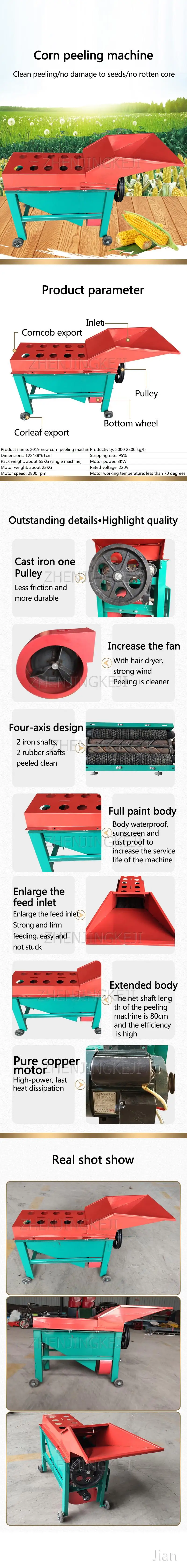 Name: Corn peeling machineModel: YMBP-20191008Voltage: 220vPower: 3kwProduct weight: 77kgProduct size: 128*38*61CMMotor speed: 2800 rpmStripping rate: 95%Product advantages: clean peeling without threshing, stable performance (2000-2500 kg/h), automatic separation, and better effect after drying.Всем здравствуйте)купил и дочки такую курточку! Очень понравилась! Красивая, теплая, стильная, очень качественно выполнена! Удобные карманчики, очень вместительные!Легк о стирается,... Читать отзыв полностью...