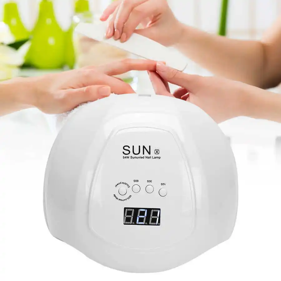Характеристики: УФ/светодиодный светильник, защита от перегрева, отсутствие черных рук, солнечный светильник, мощность 54 Вт, умный гель для выпечки, двойное использование для рук и ног, отсутствие повреждений глаз