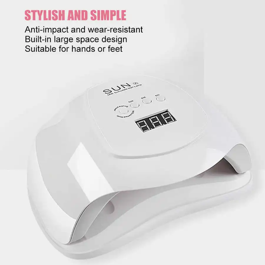 1. 54 Вт Высокая мощность, быстрое высыхание, инфракрасное чувствительное устройство, светодиодный/УФ двойной светильник, автоматически распознает сенсорный выключатель. Цифровой экран, вы можете узнать о рабочем состоянии машины в любое время.