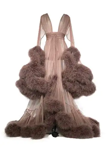 Модная ночная рубашка с перьями для невесты, прозрачная фатиновая Дамская сексуальная ночная рубашка, длинная юбка