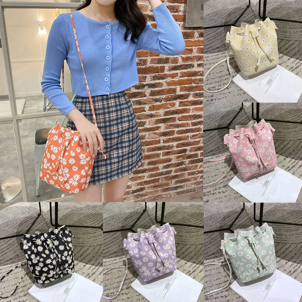 Модная женская однотонная сумка через плечо с цветами, сумка-мешок, сумка через плечо, ручная сумка