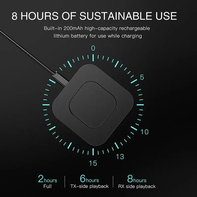 * 2 режима передатчика по беспроводной сети передают аудио с вашего Bluetooth-бесплатного телевизора, домашней стереосистемы или CD-плеера к вашим bluetooth-наушникам или динамикам.