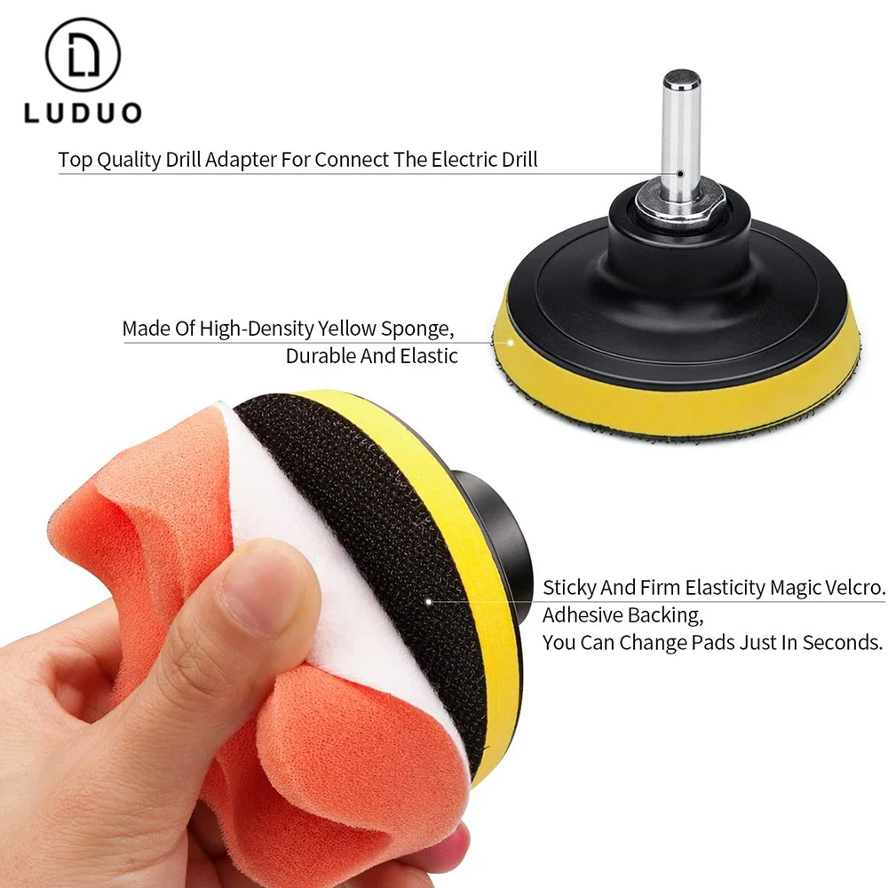 LUDUO 7 шт. 3 "Автомобильный пенополировальный набор для полировки полировальной губки фар ремонт M10 набор адаптеров для сверления с порошком для мытья автомобиля
