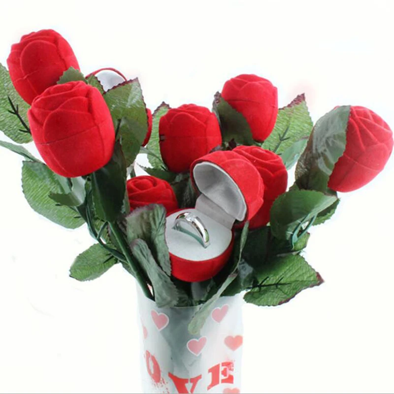 1 шт. романтическая красная роза кольцо коробка Персонализированная бархатная Свадебная подарочная коробка День Святого Валентина обручальное кольцо Чехол ювелирные изделия упаковочная коробка