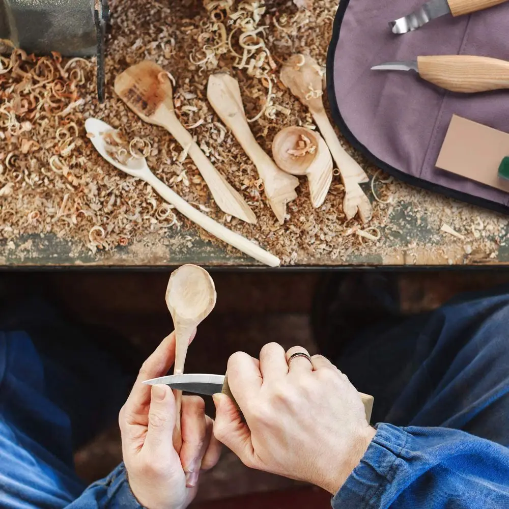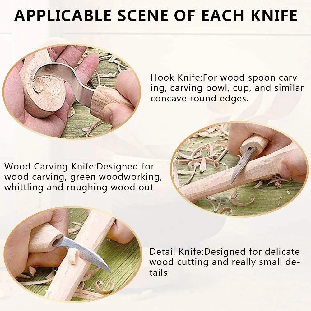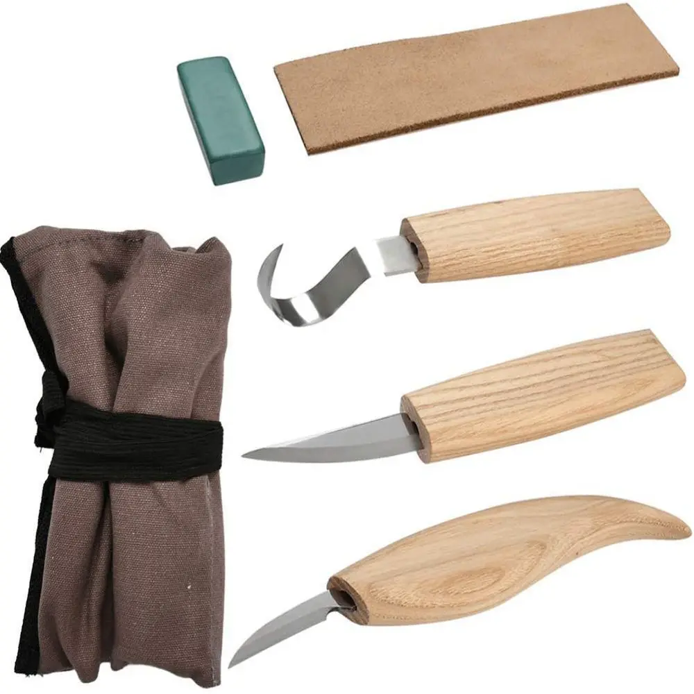 [Инструмент для резьбы по дереву 5 в 1]-нож для резьбы по дереву, нож для резьбы по дереву, нож для тонкой резки, кожаный слинг и набор инструментов для резки, который может удовлетворить все ваши потребности, будь то грубая обработка или детальная резьба.