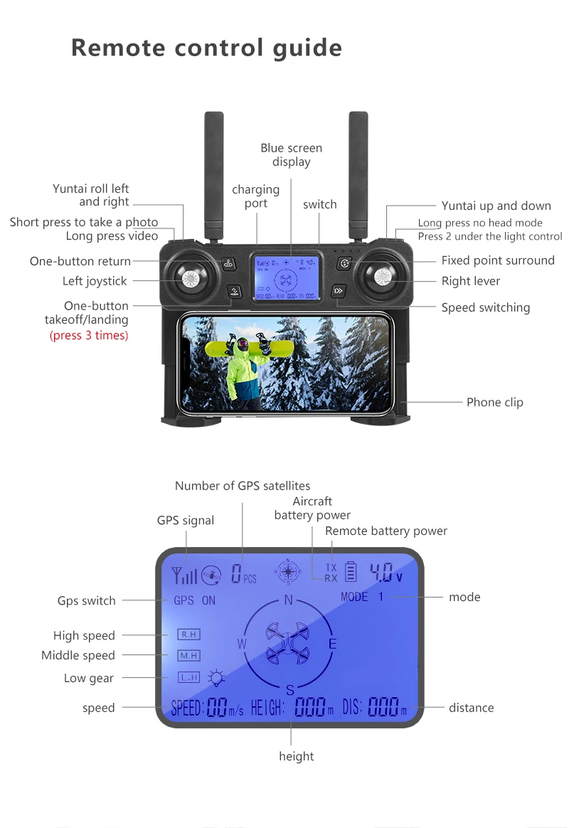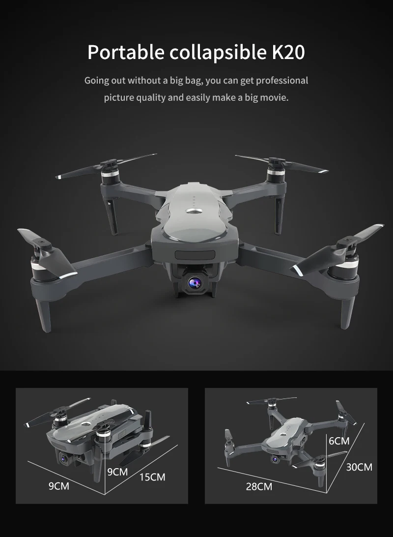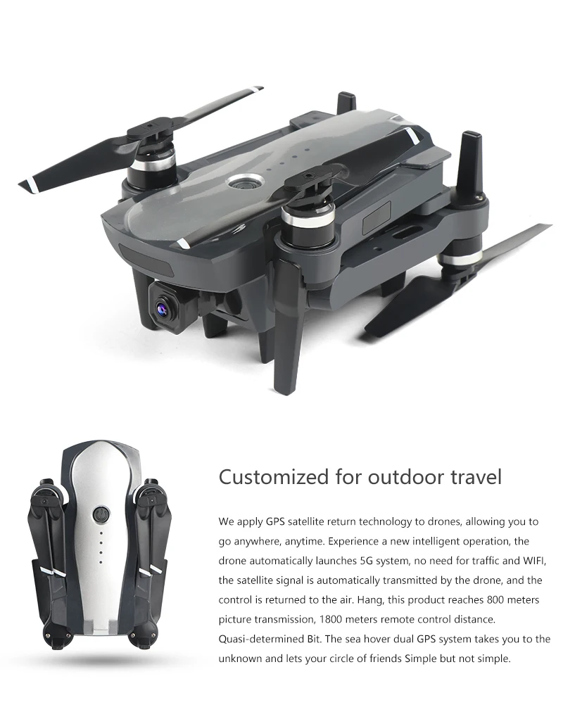 Цвет: серыйЧастота: 2,4GГироскоп: 6-AxisWiFi камера: объектив 4K HD ESC 50x зум Батарея передатчика: встроенная аккумуляторная батареяВремя зарядки: 120 минутВремя полета: 25 минутСпутниковый Прием: 10-18 спутниковПосылка Вес: около 1 кгОсобенности:-WIFI версия камеры поставляется с 4K HD Gimbal камерой., 110 ° Широкий угол, угол ESC 75 °-С GPS и оптическими режимами потока переключаются по желанию, режим оптического потока GPS может установить фиксированную высоту и достичь «Следуйте за мной функции».-С безголовым режимом, не нужно регулировать положение самолета перед полетом.-С сигнализацией низкой мощности передатчик излучает звук «di-», когда беспилотный летательный аппарат не имеет мощности.-С функцией Follow me, пультом дистанционного управления, произвольным и простым управлением. Телеметрия и планировщик миссии по умолчанию.-Делайте один шаг и снимайте, являетесь ли вы профессиональным фотографом или нет, вы можете делать красивые фотографии для вас. 1 Дрон1x11,1 В 1800 мАч Lipo батарея1 x порт для зарядки аккумулятора1 отвертка1 х usb-кабель для зарядки с пультом дистанционного управленияКоличество батарей можно выбрать